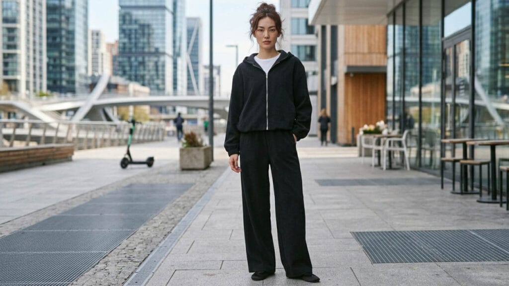 Спортивные модели ориентированы на удобство и свободу движений. Мягкие, эластичные материалы, свободные силуэты и комфортная посадка подходят для активных дней, поездок и прогулок. При этом современные тренды позволяют сочетать такие костюмы с более строгими вещами и получать актуальные городские образы.