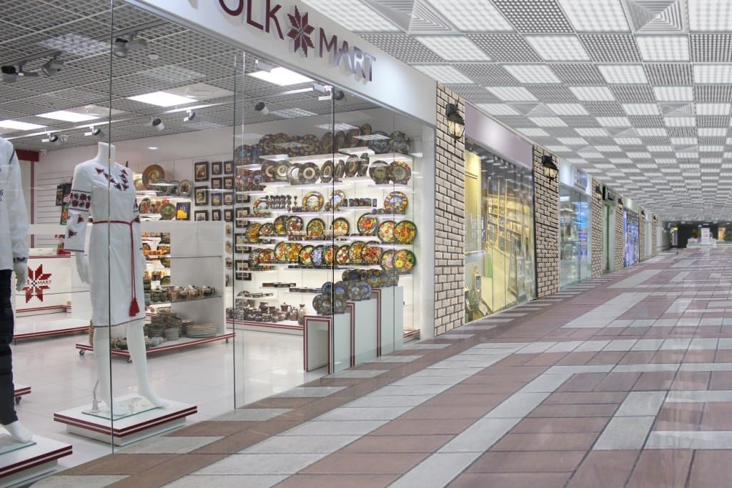 У ТРЦ використовується не весь простір, але, в той же час, там розташований магазин “АТБ”, парфюмерні лавки, магазини з одягом, аксесуарами, сувенірами, платні громадські туалети і не тільки.